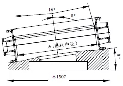 三偏心金屬硬密封蝶閥的密封面是斜錐面,閥體密封圈(圖1)與蝶板組合件密封圈(圖2)的接觸為面接觸,其工作原理是靠驅動裝置扭力直接帶動蝶板組合件,使蝶板組合件密封圈與閥體密封圈充分接觸后產生彈性變形而密封。三偏心金屬硬密封蝶閥作為一種高性能閥門,具有耐腐蝕性好、密封可靠、開啟力矩小等優(yōu)點。三偏心硬密封電動蝶閥DN1200,其中閥體密封圈材料為1Cr18Ni9Ti,蝶板組合件密封圈材料為復合的不銹鋼板與石棉板夾層組合件,閥體密封圈與蝶板組合件密封圈的加工質量直接決定蝶閥密封性能。