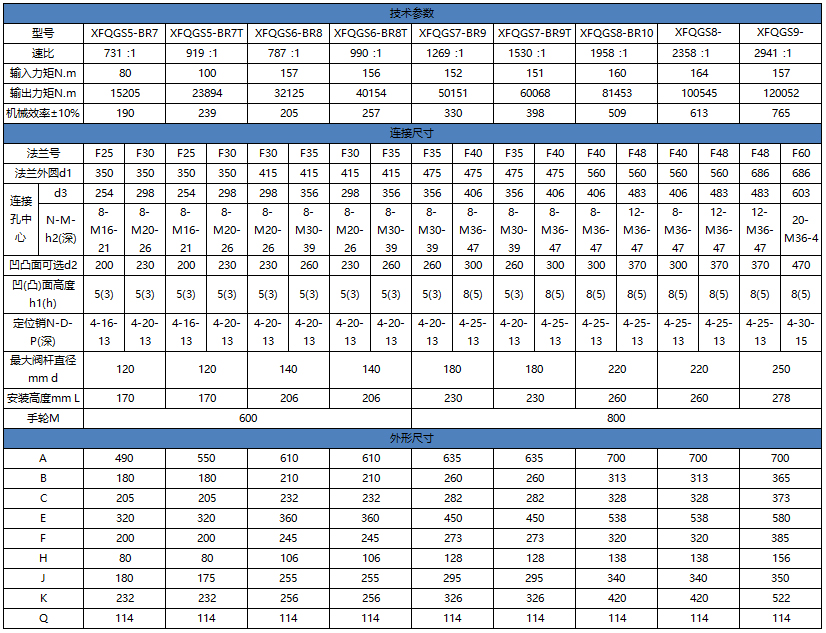 輸入小力矩,開動大閥門,使操作人員省力,每種型號提供多個傳動比,能更好的匹配不同規格的閥門。